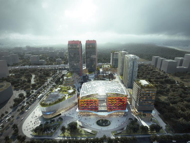 The civil engineering structure of #1-2 building (1 basement and 7 and 13 stories above ground) has a gross floor area of 63,503.06 m2, with basement area of 11,843.70 m2 , and above ground area of 51,659.36 m2. Frame-shear wall structured. The total height of Building #1 is 38.90 meters and Building #2 is 59.20 meters, and the seismic fortification intensity is 7. The indoor elevation +0.000 is equivalent to 4.700 meters above Yellow Sea Datum.