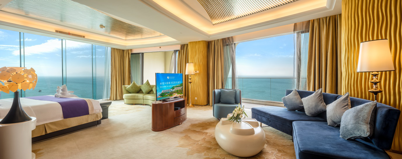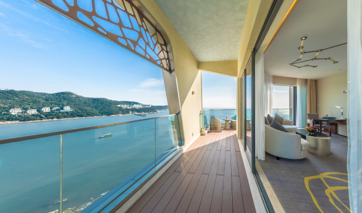 The hotel boasts a total of 345 guest rooms with a variety of beach, forest and sea views, including 272 rooms in the main building of Nansha Bay which contain 55 suites and a presidential suite, and 73 rooms in the main building of Nanshaju with 17 suites and 2 sets of waterfront villas.